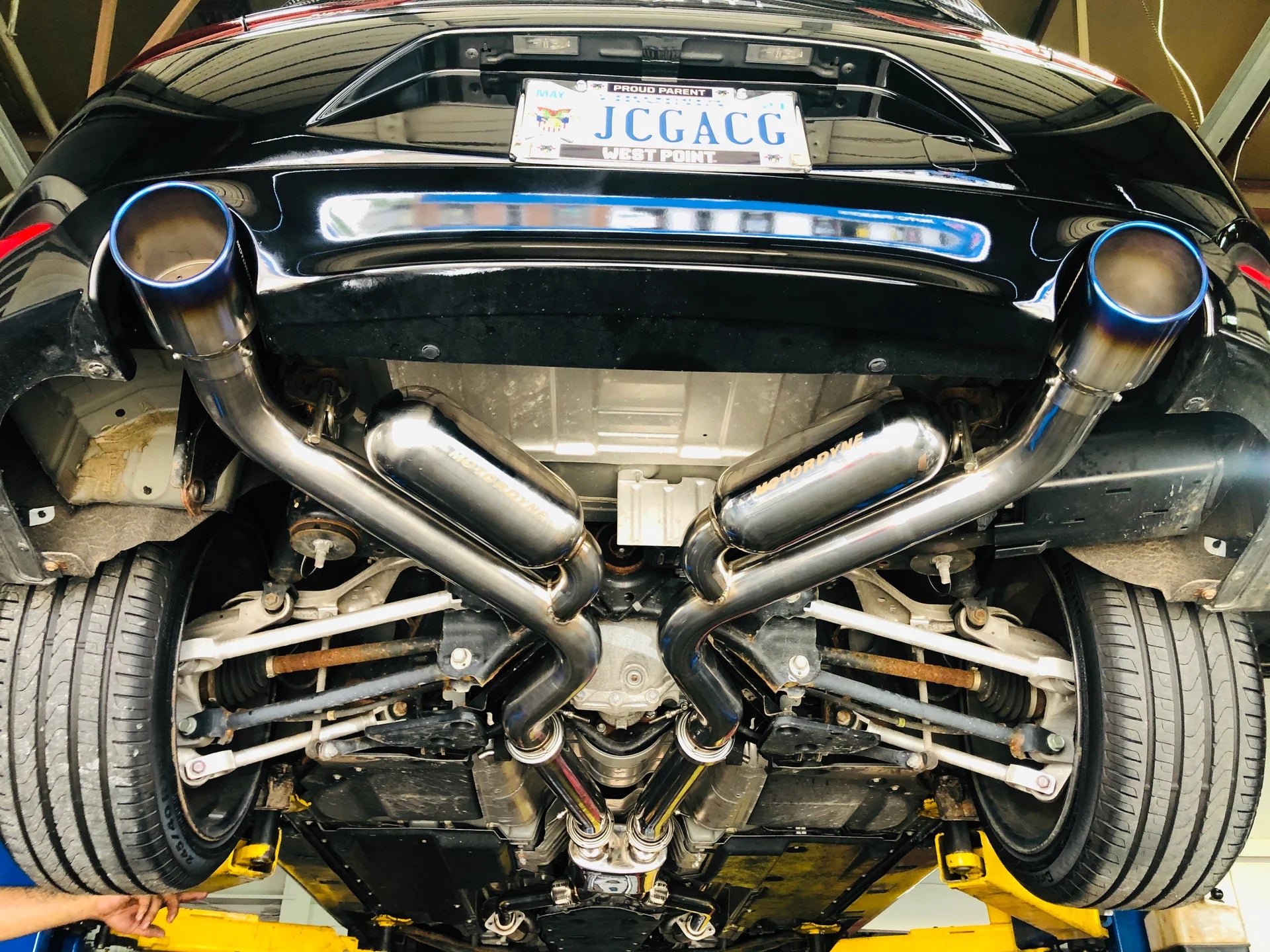 The complete system starts with two 2.5 inch tubes and then diffused to 3 inches. This design provides the best performance with an exceptionally powerful and deep exhaust sound.